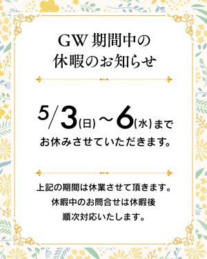 GW期間中の休暇のお知らせ